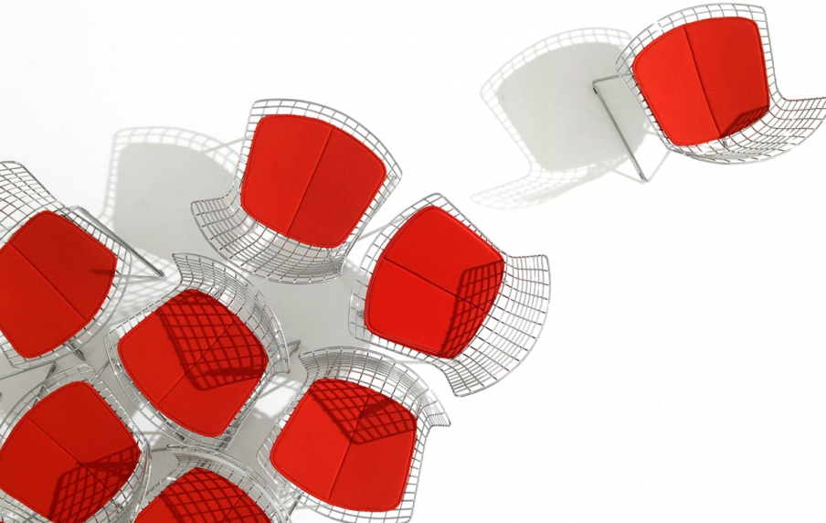 Een collectie ontworpen in 1950 door beeldhouwer Harry Bertoia. Een collectie die gebogen metalen staven tot kunst verheft. Om het met Bertoia's eigen woorden te zeggen: "Als je naar deze stoelen kijkt, zie je dat ze voornamelijk uit lucht bestaan, als een sculptuur. Ruimte passeert er doorheen.